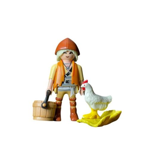 Figura suelta Playmobil Aldeano con cubo y gallina