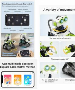 434 piezas llenas de magia, diversión y entretenimiento que te ayudarán a aprender los conceptos básicos de la programación. El IBOT cuenta con un único centro de control de baterías de litio desde el que se gestiona la recarga tanto de la batería como de las luces Led. También consta de una magnífica y completa App desde la que se puede programar la secuencia de movimientos o utilizarla como Radio control. Controla la velocidad de movimiento, enciende las luces incorporadas en los ojos o gira las armas o su cabeza
