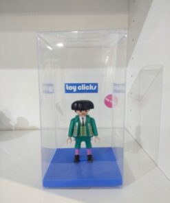 Caja de acetato transparente con una base fabricada en 3D para que la figura o clicks quede de pie en el interior de la caja. Ideal para regalo de clicks customizados.