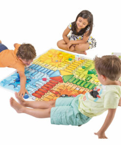 Juego del parchís fantástico para jugar al aire libre como dentro de casa, por sus materiales resistentes, inofensivos y lavables . Además los niños se sentirán parte del tablero por su increíble tamaño de 1 metro.
