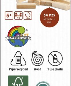 Juego de la torre fabricado íntegramente en madera. Coge bloques que sean innecesarios para la estabilidad de la torre y colócalos arriba para hacerla lo más alta que puedas, pero ojo, porque si se te cae pierdes. Presentado en caja de cartón reciclable de diseño actual.