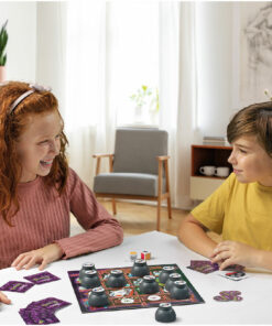 Juego de estrategia y memoria. ¡Menudo lío! los duendes se han puesto a jugar en la estantería de los ingredientes mágicos y ahora no hay manera de encontrar lo que se necesita para hacer las pócimas. Convertíos en brujas y brujos, moved a los duendes adecuados y conseguid completar vuestras pociones antes que el resto. ¡Ah! y no olvidéis mover al gato, que siempre se sienta justo encima del ingrediente que más necesitas.