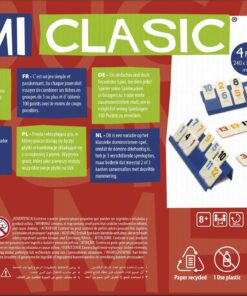 Simple y apasionante juego en el que cada jugador deberá combinar sus fichas, haciendo grupos de un mismo número en diferentes colores o escaleras de un mismo color para conseguir quedarse sin fichas. Versión hasta 4 jugadores. Tamaño ficha: 2,7×3,8×0,4 cm