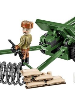 - En la caja encontrarás todo lo necesario para construir la historia ladrillo a ladrillo. Puedes construir fácilmente un modelo del cañón soviético siguiendo instrucciones claras basadas en iconos simples. El set incluye: una figura de soldado con estampados imitando uniformes históricos y elementos ambientales como sacos de arena y alambre de púas.