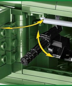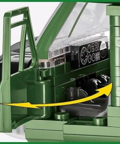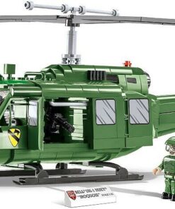 Utilizando un conjunto de bloques de construcción COBI, construirás un helicóptero americano Huey extremadamente popular, reproducido con precisión a escala 1:32. El set fue lanzado en la serie Guerra de Vietnam bajo licencia del fabricante estadounidense de helicópteros comerciales y militares, Bell Helicopter Textron. El modelo, que mide hasta 39 cm de largo, está cubierto con impresiones de alta calidad que no se desgastan ni siquiera con un uso intensivo. Los estampados son característicos de la caballería aérea estadounidense e imitan los detalles del equipamiento. El helicóptero estaba equipado con hélices giratorias y puertas correderas.
