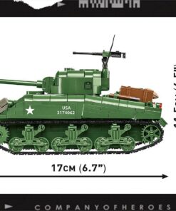 El Sherman, basado en ladrillos, fue cuidadosamente diseñado a escala 1:35 con 615 elementos. El tanque cuenta con tracción sobre orugas, una torreta giratoria, un cañón móvil, una escotilla que se abre y una escotilla de servicio con un motor simulado debajo. El set incluye una figura de un conductor de tanque estadounidense con auriculares y una metralleta M3 «Grease Gun». Los ladrillos presentan impresiones de alta calidad que reproducen las marcas y detalles del tanque, así como los detalles del uniforme del comandante del tanque. ¡El conjunto fue desarrollado con atención al detalle y también es una gran adición a la popular serie COBI Historical Collection! ¡Los fanáticos de la historia, los bloques de construcción y el entretenimiento virtual encontrarán aquí lo que buscan!