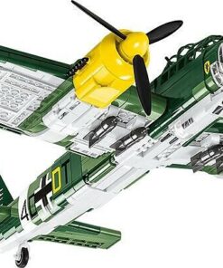 El modelo del famoso bombardero Ju 88 se desarrolló cuidadosamente utilizando 1.160 bloques de construcción a una escala sensacionalmente grande de 1:32. El conjunto utiliza sólo impresiones permanentes. ¡No encontrarás pegatinas aquí! Para reproducir mejor la compleja forma de la cabina del piloto, ¡hemos desarrollado nuevos patrones de bloques! La cabina acoge la figura del piloto incluido y queda un asiento libre. El conjunto incluye elementos móviles como hélices, alerones y escotillas de bombas con cerradura. Hay bombas desmontables y ruedas debajo de las alas. Gracias a las instrucciones intuitivas basadas en iconos claros, la construcción es sencilla. El avión es imprescindible para todos los fanáticos de la historia, la aviación, la militaria y la tecnología militar. El conjunto fue fabricado íntegramente en Polonia dentro de la Unión Europea.