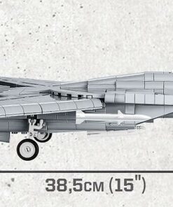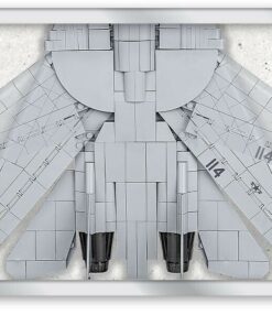 F-14 TOMCAT es un modelo de avión único lanzado bajo la licencia original TOP GUN™ y NORTHROP GRUMMAN. El legendario piloto de la Marina estadounidense Pete «Maverick» Mitchell y su compañero «Goose» pilotan un vehículo biplaza de este tipo. Pensando en esta icónica producción cinematográfica, ahora puedes construir tu propio F-14 en escala 1:48. El modelo fue reproducido fielmente utilizando hasta 757 bloques de construcción COBI. El set incluye impresiones de alta calidad que reproducen fielmente la pintura original de la máquina cinematográfica. El modelo está equipado con alas móviles de geometría variable, tren de aterrizaje retráctil y ruedas giratorias. Debajo de las alas hay un gran arsenal de armas. La cabina alberga dos figuras de pilotos de película incluidas en el set. ¡Sus asientos están firmados (Maverick & Goose)! Las figuras reflejan la apariencia de los personajes de la película y están equipadas con cascos y máscaras de oxígeno característicos. El set también incluye un elegante expositor de ladrillos y una placa con el nombre del avión y el logo de la película. Este set con licencia exclusiva es sin duda una gran idea como regalo original para cualquier aficionado al cine, la aviación y el ejército, independientemente de su edad. El avión queda perfecto en una oficina elegante o en la habitación de un adolescente.