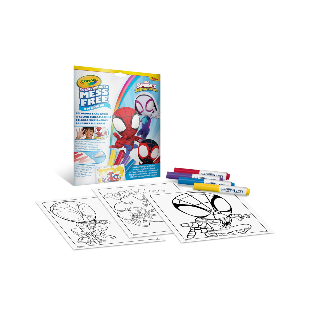 - Con Colorea Sin Manchas Wonder Spidey de Crayola, colorear se convierte en una aventura segura donde la creatividad se desata sin preocupaciones. Es ideal para peques que admiran a Spiderman y quieren explorar sus superpoderes artísticos sin ensuciar la ropa, las manos o los muebles. Cada página revela escenas de Spidey listas para cobrar vida con color, y lo mejor es que solo aparece el color sobre el papel especial, evitando manchas en todo lo demás.