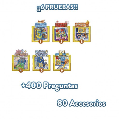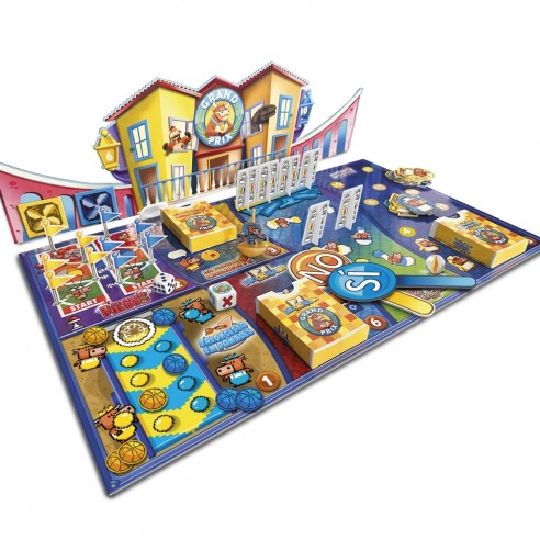 El Juego Grand Prix es un juego de mesa familiar basado en el mítico programa de televisión Grand Prix. Producto oficial con 6 juegos famosos en el programa. El objetivo es conseguir ganar el mayor número de pruebas y obtener mayor puntuación que el equipo contrario. ¿Qué equipo ganará la partida? Los accesorios están incluidos. Se recomiendo a partir de 6 años y pueden jugar entre 4 y 10 jugadores.
