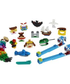 Hay 12 divertidos juguetes LEGO® para armar (un castillo, una cara, una princesa, un murciélago, un gallo, un ladrón, un barco pirata, un búho, un fantasma, un molino de viento, un tiburón y un dinosaurio), y ladrillos adicionales.