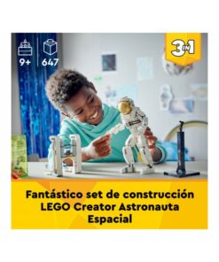 El astronauta de juguete construible de este set LEGO de 647 piezas mide aproximadamente 27 cm de altura.