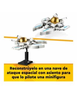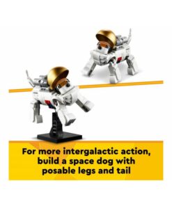 Los niños y las niñas construirán 3 juegos espaciales diferentes: la figura del Astronauta Espacial articulado, un perro del espacio futurista con patas y cola articuladas, o una nave de ataque espacial con asiento para la minifigura que que pilota la nave (no incluida). Los 3 modelos son óptimos regalos creativos de temática del espacio y vienen con bases de exposición.