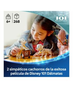 Este set de construcción incluye a Lucky y Penny, de la película Disney 101 dálmatas, y ambos personajes miden aproximadamente 9 cm de altura.