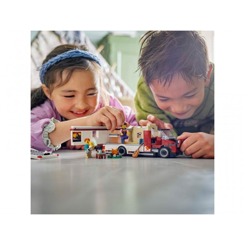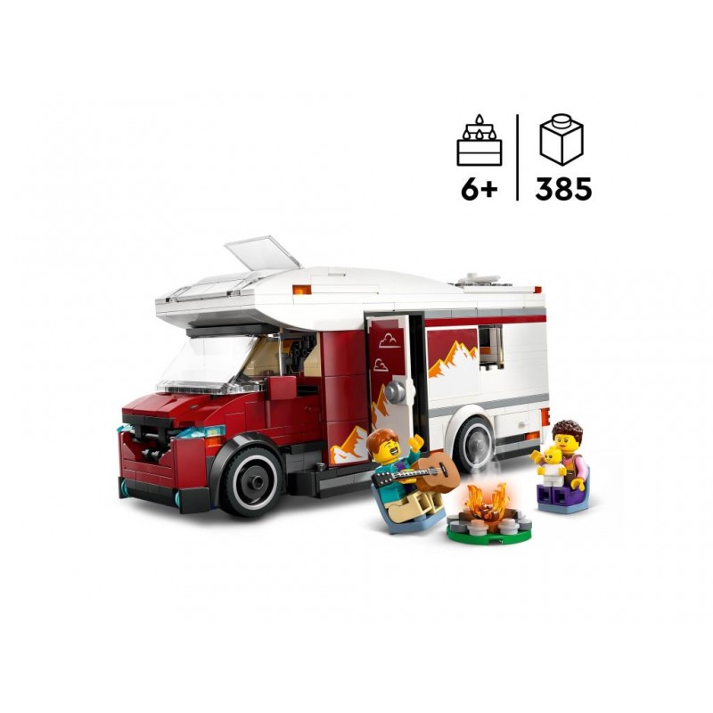 El modelo de la autocaravana de este set LEGO City de 385 piezas mide aproximadamente 8 cm de altura, 18 cm de longitud y 7 cm de anchura.