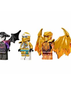 3 Minifiguras: Cole Dragón Dorado con un par de alas del Dragón Dorado, Zane Dorado y el malvado General Vangelis para interpretar trepidantes batallas