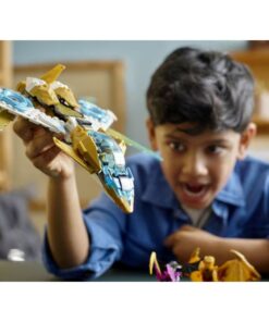 Reactor NINJAGO® de juguete: El reactor cuenta con cabina para las minifiguras, así como con alas desplegables en el modo Dragón Dorado que harán que parezca una estrella ninja voladora