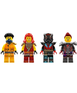 - 6 minifiguras NINJAGO®: El juego incluye a los guerreros ninja Kai, Wyldfyre y Arin, y también a los villanos Lord Ras, Jordana y un guerrero Máscara de Lobo, todos equipados con elementos que representan armas