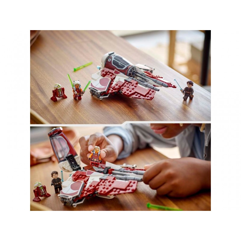 Esta maqueta LEGO Star Wars, una óptima idea de regalo para niños, niñas y fans de Star Wars a partir de 8 años, está equipado con cabina abatible, alas ajustables a las posiciones de ataque y crucero, y 2 cañones automáticos. la nave de juguete construible incluye 2 minifiguras LEGO Star Wars (Ahsoka Tano y Anakin Skywalker con espadas láser) y una figura LEGO de un droide (R7-A7) para dejar volar la fantasía. Puedes colocar a Ahsoka en la cabina del interceptor Jedi, que también cuenta con espacio a bordo para R7-A7 y para las espadas láser de Ahsoka.