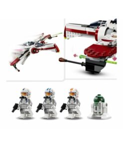 El caza estelar de este juguete de construcción viene con 4 personajes LEGO Star Wars. Las minifiguras LEGO del piloto clon Odd Ball, el piloto clon Jag y el piloto clon pueden colocarse en las cabinas, y también hay espacio a bordo para la figura LEGO del droide R4-P44.