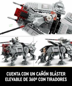 - Diseñado para jugar: El AT-TE cuenta con patas articuladas y un mango extensible para levantarlo y moverlo, y se puede acceder fácilmente a su cabina desmontable y a sus 2 detalladas cabinas para los soldados clon