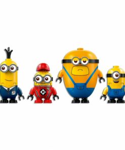 ¡Regala a tu fan de los Minions el set LEGO Gru 4: Mi villano favorito Minions y Coche Banana! Echa un vistazo a este coche banana con asiento del conductor y motor desmontable. El vehículo viene con 4 Minions y accesorios. Mega Minion Dave sostiene el motor con una mano y una barra de levantamiento de pesas en la otra. Mel pinta un cuadro de una banana mientras AVL Tim pasa volando con un mando a distancia en la mano y hélices giratorias en la cabeza. Su mesa de trabajo está llena de herramientas especiales, como gafas de rayos X. Pit Crew Ron está a cargo de cambiar pañales en el cambiador. Tiene todo el equipo que necesita, incluido un desintegrador de pañales usados.