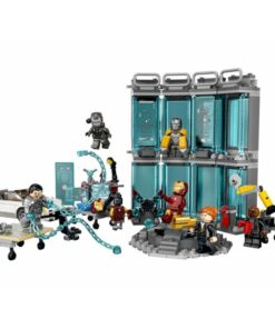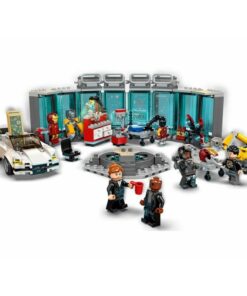 Detalles realistas: Incluye elementos que reconocerás de las películas, como un deportivo con un plano-maqueta de la Expo Stark, un brazo auxiliar robótico, una zona de trabajo con herramientas y montones de accesorios cargados de autenticidad