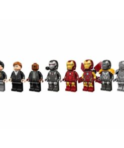 8 minifiguras de personajes Marvel: Los trajes de Iron Man MK3, MK25 y MK85, Tony Stark, Pepper Potts, Nick Furia, Máquina de Guerra y Whiplash