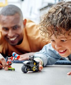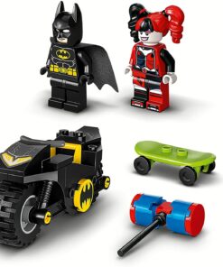Emblemáticos personajes: Incluye a Batman™ con su Batmoto y su Batarang™, y a Harley Quinn™ con su monopatín, su mazo y dinamita. El ladrillo para principiantes facilita la construcción para que los niños puedan ponerse a jugar de inmediato