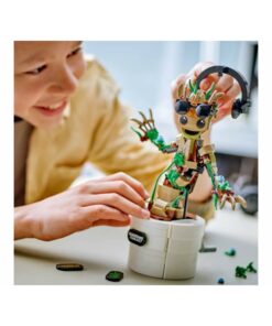 Este juguete de construcción de Groot cuenta con cabeza móvil y brazos articulados. Cuando los peques giran la manivela situada en la parte posterior de la maceta, Groot empieza a bailar. La figura puede adaptarse con hojas adicionales, auriculares construibles y gafas de sol. Además, los niños pueden personalizar la maceta de Groot colocando 1 de 3 placas de identificación en la parte frontal (incluida una relacionada con la serie para televisión Yo soy Groot). Todos estos accesorios se pueden guardar en el compartimento integrado en la maceta. Para pasarlo aún mejor construyendo, la app LEGO Builder permite a los peques acercar y girar versiones 3D de sus modelos y seguir sus progresos.
