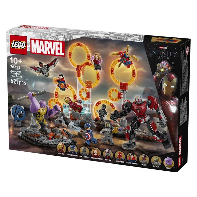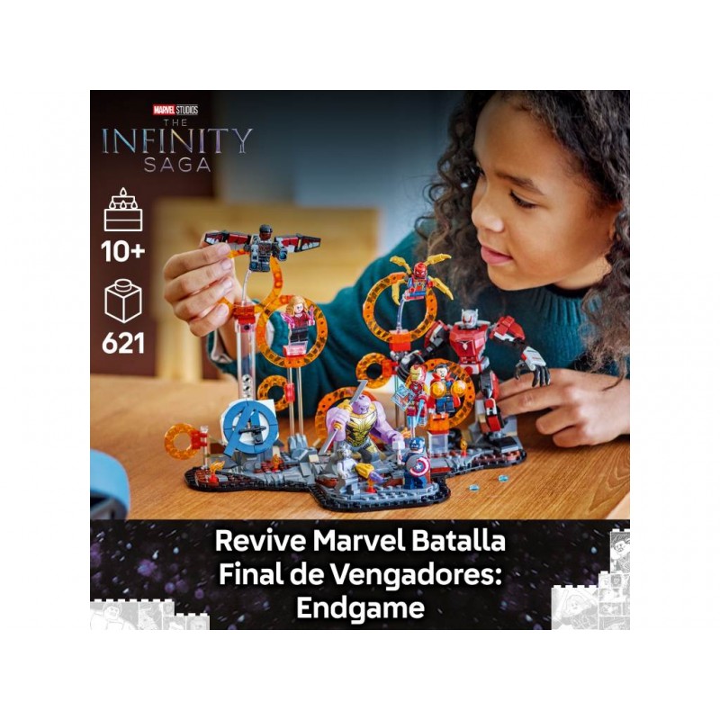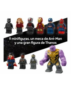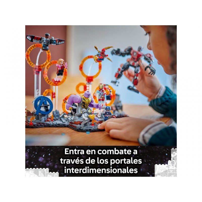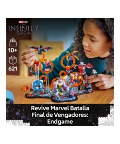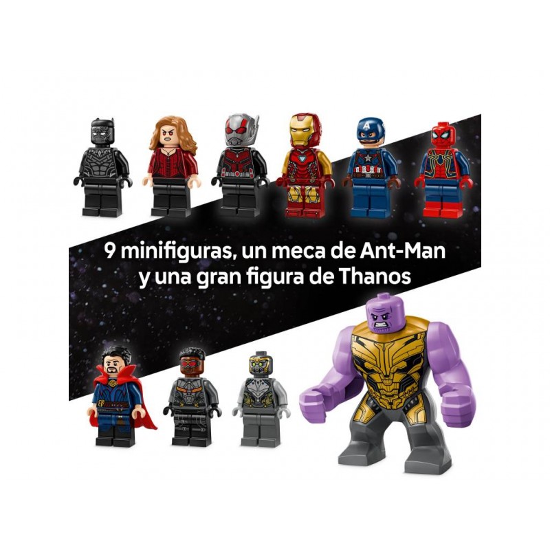 Este set basado en el épico enfrentamiento que tiene lugar en la película de Marvel Studios Vengadores: Endgame trae anillos dobles para crear portales interdimensionales y 9 minifiguras: el Capitán América (con escudo), Iron Man MK85 (con espada y escudo), un Chitauri (con cañón en el brazo), Ant-Man, la Bruja Escarlata (con elementos que representan llamas), Doctor Strange, Iron Spider (con 4 “piernas” móviles en la espalda), Black Panther y Falcon (con 2 cañones).