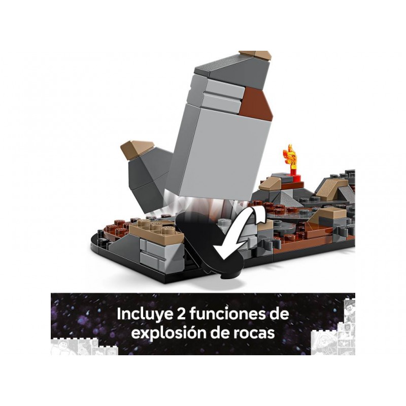 Una gran figura LEGO de Thanos, un meca de Ant-Man articulado, 2 funciones de explosión de rocas y una capacidad de reconfiguración infinitamente versátil garantizan acción de superhéroes a una escala épica.