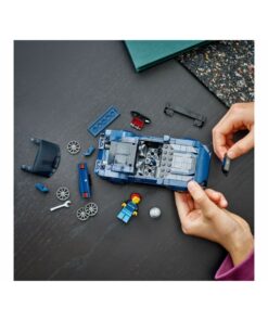 El coche Ford Mustang de juguete incluye numerosas características de diseño de gran realismo: el alerón trasero, la inconfundible rejilla, los faros, los tubos de escape, los logotipos de Ford y un detallado interior con palanca de cambios y salpicadero. El coche LEGO de construcción viene con techo desmontable y una minifigura de una piloto con una sudadera que lleva “Mustang Black Horse” impreso.