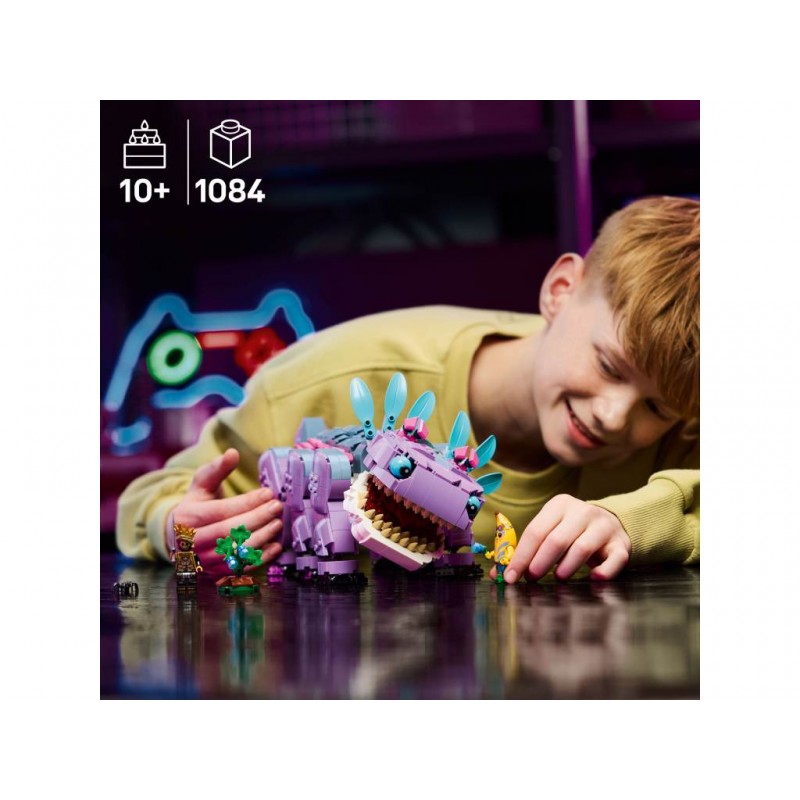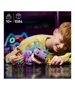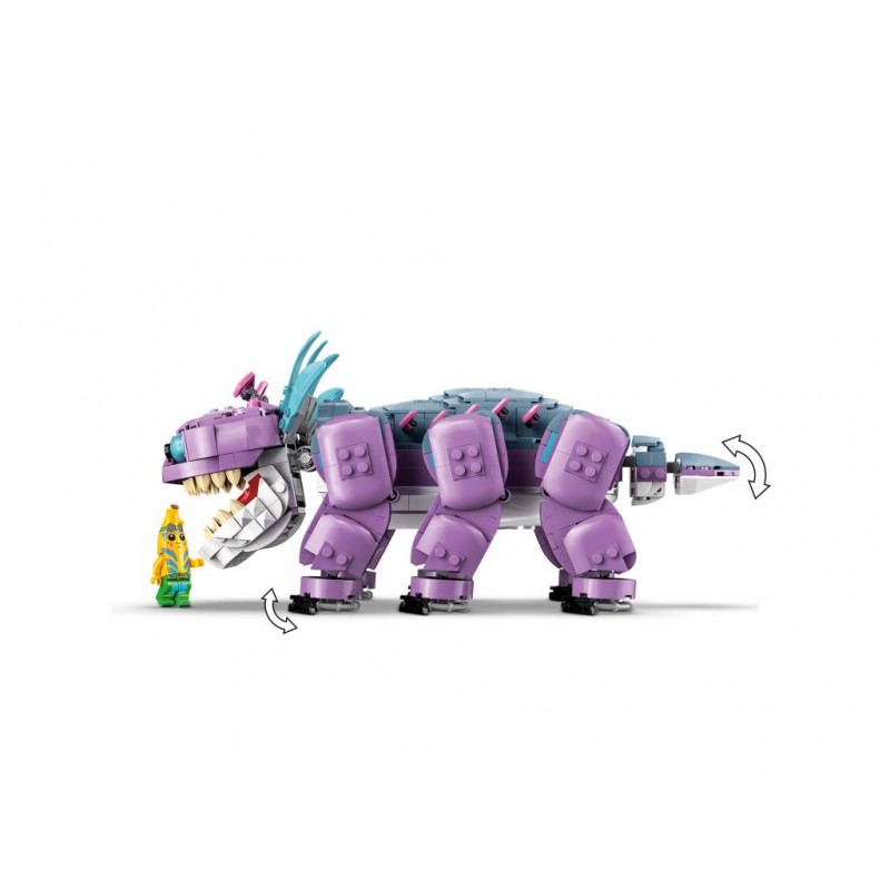 Klombo es una gran criatura del videojuego LEGO Fortnite, y este kit de maquetas ofrece a los peques la oportunidad de divertirse recreándola con ladrillos LEGO. Luego descubrirán los divertidos detalles de la figura articulada del dinosaurio, como las patas móviles, la boca que se abre y la cola giratoria. El set trae un arbustito de bayas klombo que se quitan para dárselas a Klombo y hacerse amigos suyos después de ponerlo furioso. Cuenta también con minifiguras LEGO Fortnite de Banano aventurero isleño y Oro, que puedes colocar en el lomo de Klombo.