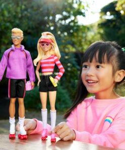 - ¡Las posibilidades para contar historias son infinitas con los muñecos Ken Fashionistas! Mantienen la calma con looks modernos adaptados a su estilo individual. El muñeco Ken lleva un conjunto lleno de color con un polo de manga larga a rayas rojas y blancas y unos pantalones cortos rosas. ¡Estas zapatillas están hechas para caminar! Unas zapatillas blancas con calcetines a juego completan su versátil y elegante conjunto.