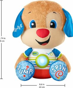 El peluche musical Perrito Ríe y Aprende de Fisher-Price, el primer mejor amigo de tu bebé, aumenta de tamaño. Este cachorro extragrande reproduce canciones, sonidos y frases activadas por movimiento que animarán a los más pequeños a moverse. Diseñado con tecnología Inteligente con 2 niveles de aprendizaje, que ayuda a aprender el alfabeto, los números, los sonidos de animales y mucho más mientras los niños juegan. El juego activo ayuda a fortalecer la motricidad gruesa de tu bebé mientras práctica su capacidad de escuchar y seguir instrucciones.