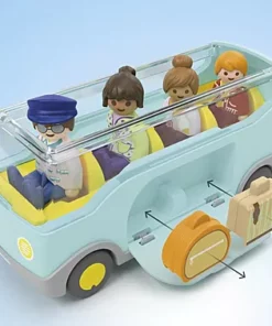 Incluye 4 figuras. El autobús dispone de compartimento para guardar las maletas.