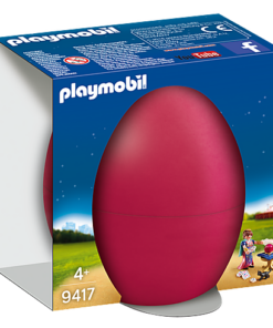 Dentro de un huevo. Figuras para coleccionar. Figuras para completar tus mundos PLAYMOBIL. Huevo de pascua de color rosa con figura reina y bebé Pegaso en su interior.
