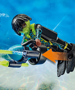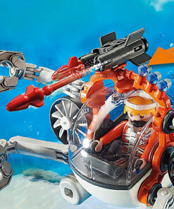 Con el fuerte SPY TEAM Sub Bot, los agentes especiales rastrean al Capitán Fisheye, incluso bajo el agua. ¡El villano también está disparando misiles al submarino! Pero no hay problema, con el brazo de agarre los proyectiles son repelidos en poco tiempo y el agente comienza a contraatacar. El villano se aleja rápidamente, de lo contrario será atrapado y capturado por el brazo de agarre. El SPY TEAM Sub Bot es flotante y está equipado con un brazo de agarre móvil y misiles disparables.