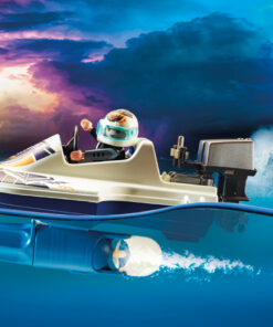 Barco flotante: extintor móvil, cabrestante con ancla, brazo de grúa móvil con cabrestante, techo extraíble, faros, imitación y mucho más