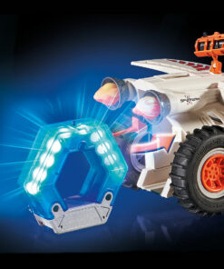 Capaz de arrastrar una figura. Incluye tres figuras y portal de hielo con luces y sonido. Medidas: 23.5 x 13.5 x 16.5 (LxPxA).