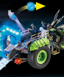 Con catapultas, 2 figuras y luces y sonido. Medidas: 33 x 16 x 12 cm (LxPxA).