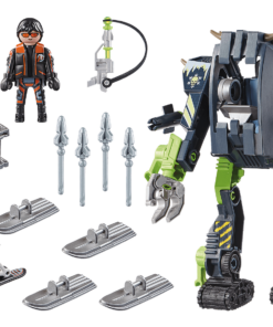 Convierte el robot en diferentes vehículos. Incluye dos figuras, función de disparo y agarres. Una figura se puede sentar en la cabina. Medidas: 14.5 x 8 x 18 cm (LxPxA).