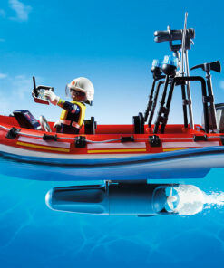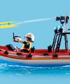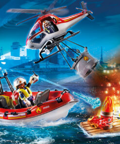 Rellena el cubo del helicóptero con agua y vacíalo sobre el fuego. El barco flota y es compatible con el motor submarino ( se vende por separado) Playmobil® 5159 Motor Submarino.