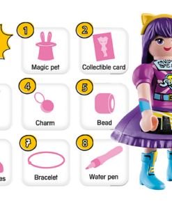 Como misteriosa y creativa soñadora, Viona se siente como en casa en el colorido mundo comic de Edwina. Aquí ella puede dar vida a sus sentimientos y pensamientos en imágenes. Aquí, todo está lleno de colores brillantes y dibujos variados. Con entusiasmo, las chicas descubren cómo pueden crear fácilmente nuevas criaturas dibujando, pintando y dando rienda suelta a su creatividad. Pero incluso en este mundo de los sueños de comic, los desafíos acechan. ¿Pueden las EverDreamerz evitar que el colorido sueño de comic de Edwina se convierta en una pesadilla en blanco y negro? En el set de juego se incluye el personaje de EverDreamerz Viona con un vestido comic morado y su bebé panda, cuentas, pegatinas, carta coleccionable, paleta de colores y muchos otros accesorios. Como encanto especial, Viona lleva un cepillo para la pulsera de silicona. Con el nuevo bolígrafo de agua, aparecen colores brillantes en las pegatinas en blanco y negro y desaparecen después del secado.