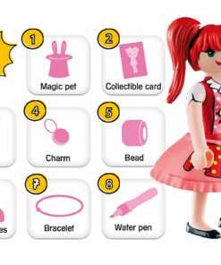 El talento en el escenario de Starleen con sus habilidades de canto y baile también se puede mostrar en el colorido mundo comic de Edwina. Aunque a ella le gusta atraer toda la atención, siempre usa sus talentos para ayudar a sus amigas. El fantástico mundo comic de Edwina es justo lo que le gusta a Starleen. Aquí, todo está lleno de colores brillantes y dibujos variados. Con entusiasmo, las chicas descubren cómo pueden crear fácilmente nuevas criaturas dibujando, pintando y dando rienda suelta a su creatividad. Pero incluso en este mundo de los sueños de comic, los desafíos acechan. ¿Pueden las EverDreamerz evitar que el colorido sueño de comic de Edwina se convierta en una pesadilla en blanco y negro? El set incluye al personaje de EverDreamerz Starleen con vestido comic y con suricata roja, cuentas decorativas, pegatinas, carta coleccionista, bolso, cámara fotográfica y muchos otros accesorios. Starleen tiene un lazo rojo como amuleto personal para la pulsera de silicona. Con el nuevo bolígrafo de agua, aparecen colores brillantes en las pegatinas en blanco y negro y desaparecen después del secado.