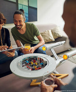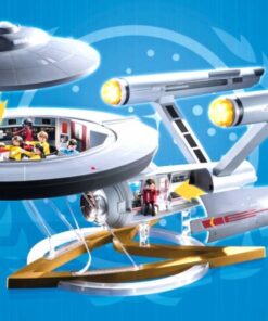 El capitán Kirk ya se está preparando para nuevas aventuras en el puente de mando de la nueva U.S.S. Enterprise NCC-1701 de PLAYMOBIL al estilo de la original de 1966! El set de juego de la marca más grande y lujoso creado hasta el momento, pues la emblemática nave medirá más de 1 metro de largo, incluyendo varios compartimentos y luces y sonidos electrónicos que pueden ser controlados a través de un Smartphone por Bluetooth. Además del capitán y diversos accesorios, incluye las figuras del resto del equipo: el Dr. Leonard “Bones” McCoy, el alférez Chekov, la teniente Uhura, el señor Spock, el teniente Sulu y, por supuesto, el ingeniero jefe Montgomery “Scott” Scotty. Además se podrá exponer en una base o colgar en el techo a través de un cable de suspensión.