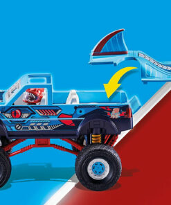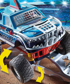 ¡El Stunt Show Shark Monster Truck es pura adrenalina para los fans de la acción! El ingenioso diseño con una elegante aleta en el techo, el peligroso radiador con mordedura de tiburón y el parabrisas hacen que el Shark Monster Truck sea inconfundible. Con sus ejes totalmente suspendidos y sus ruedas que se adaptan a cualquier superficie, el Monster Truck puede manejar las acrobacias y los obstáculos más difíciles. El temerario especialista no escatima en riesgos y conduce con ímpetu. ¡Este peso pesado es imparable!