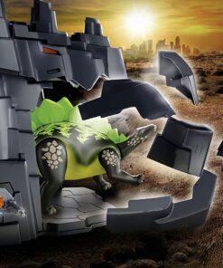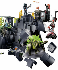 El Equipo Dino Rise es todo un doble poder dino-humano. Una y otra vez, la codiciosa Ludmilla intenta tomar el portal en Dino Rock con sus robots de batalla. Una y otra vez, la codiciosa Ludmilla intenta tomar el portal en Dino Rock con sus robots de batalla. Pero el Equipo Dino Rise está atento y se enfrenta valientemente a Ludmilla y a la Corporación Cometa. La casa del árbol en Dino Rock sirve como base de operaciones de los adolescentes. En un escondite bien camuflado en la pared de la roca, planean su estrategia de defensa. Se abastecen de suministros y herramientas a través del montacargas giratorio. Un puente basculante conduce a un escondite secreto en una cueva. Si la Corporación Cometa ataca, el doble cañón giratorio está listo para la defensa. En caso de emergencia, el tobogán secreto bajo el puente conduce al exterior. Por supuesto, el Equipo Dino Rise nunca iría a la batalla sin sus amigos dinosaurios. Para liberar al Stegosaurus de la roca, Ian inserta una piedra de energía en la llave, la introduce en la roca y la hace girar. Con un enorme estruendo, los trozos de roca se abren y el gigante prehistórico salta de la roca con un gigantesco rugido de dinosaurio. La Comet Corporation está de enhorabuena. El set de juego incluye las figuras del Team Dino Rise, Ian, Ludmilla y Ralph, un Stegosaurus, un laboratorio de pruebas con estación de análisis, piedras de energía, un vehículo de perforación, así como una roca de dinosaurio con varias funciones de luz, sonido y vibración y muchos más extras para vivir aventuras de dinosaurios llenas de acción.