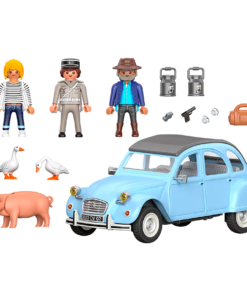 - El set de juguetes incluye un Citroën 2CV de PLAYMOBIL, tres figuras PLAYMOBIL, un cerdo, dos gansos, dos latas de leche, faros delanteros y muchos otros extras. Es un regalo perfecto para entusiastas de los coches y los aficionados a la nostalgia.